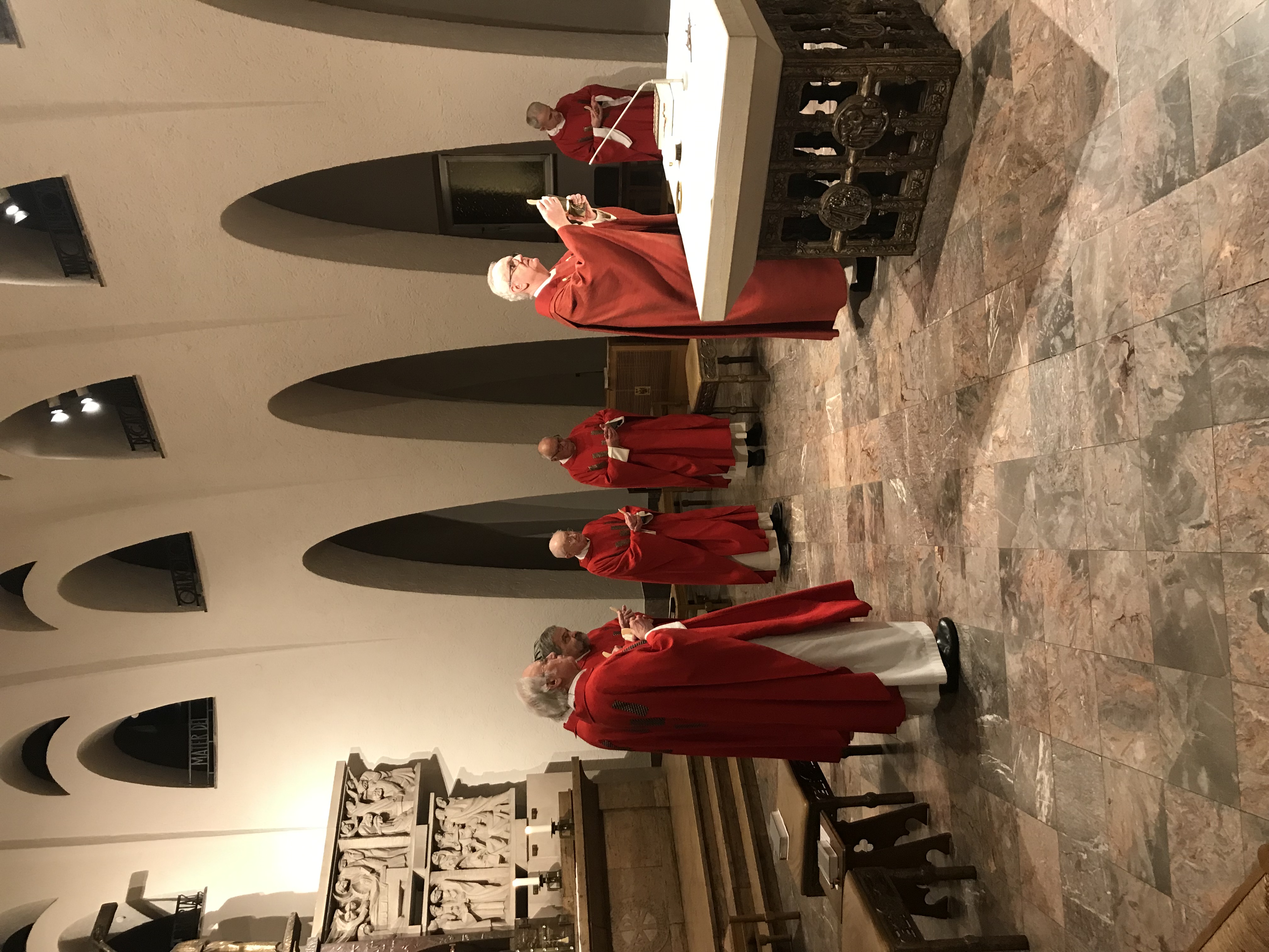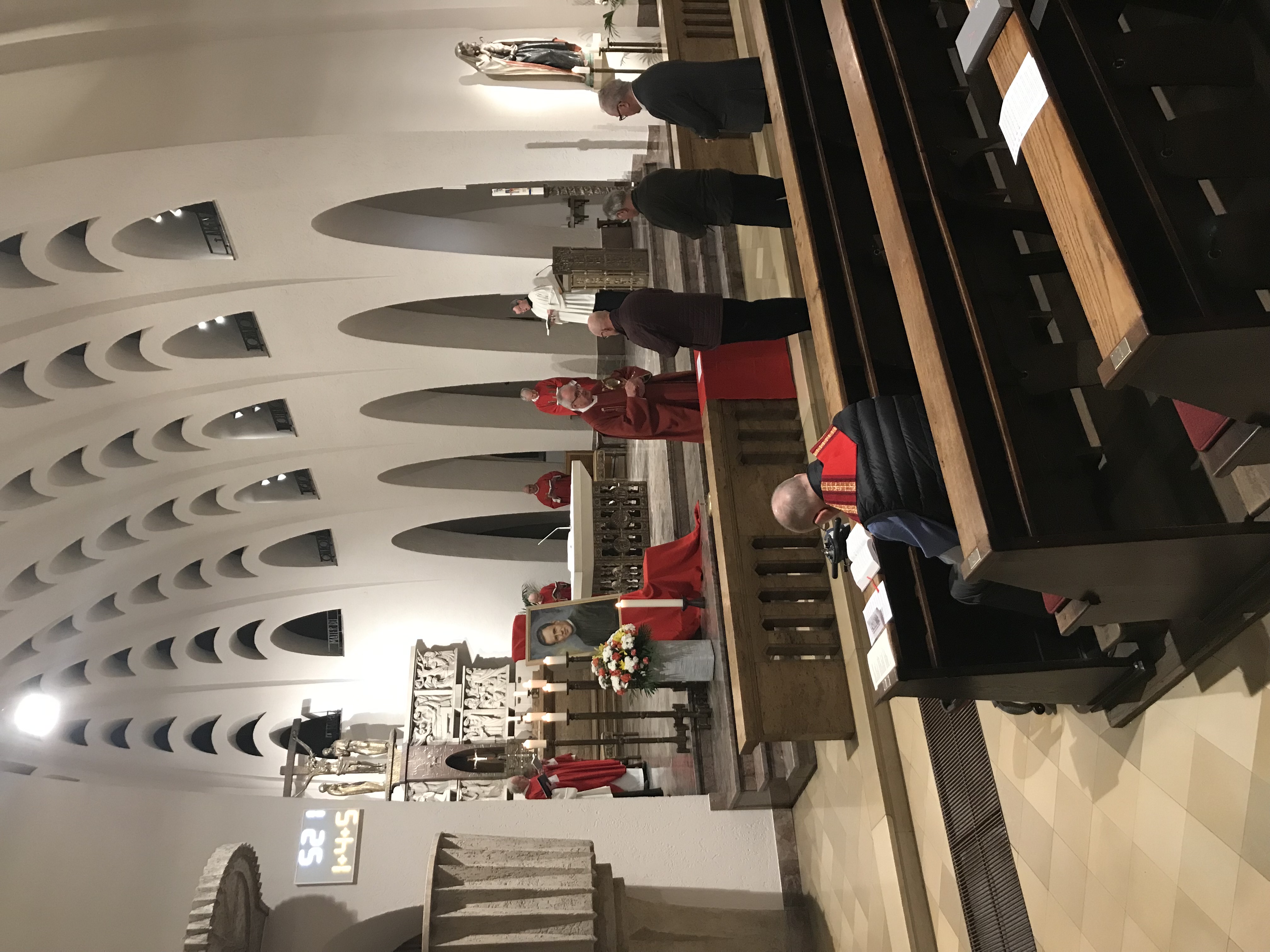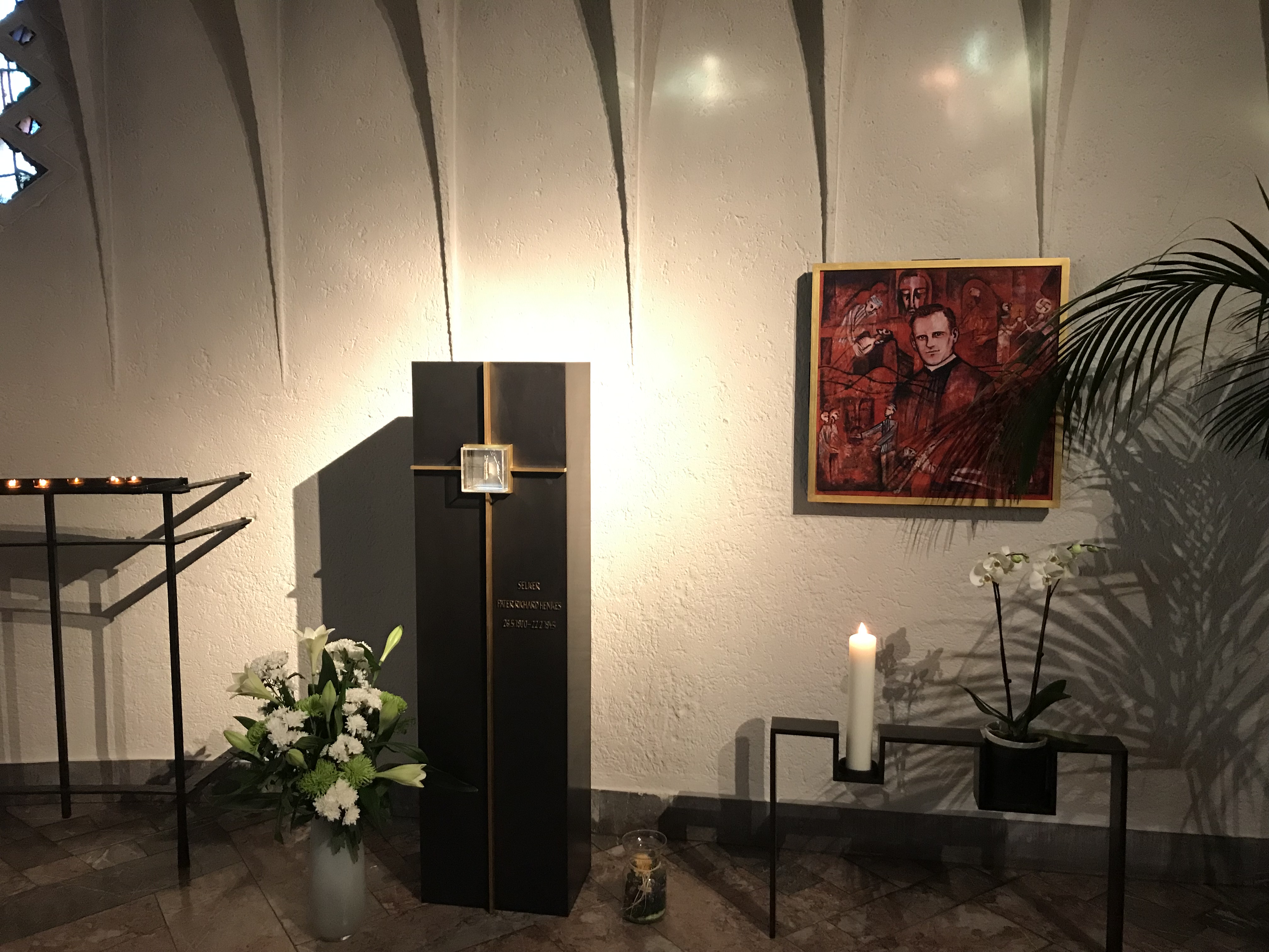 Nach der Predigt fand an der Verehrungs-Stele des Seligen in der Pieta-Kapelle ein Gebet statt. Die Prozession dorthin und den gesamten Gottesdienst gestalteten an der Orgel Frank Sittel und als Kantor Wolfgang Haberstock.